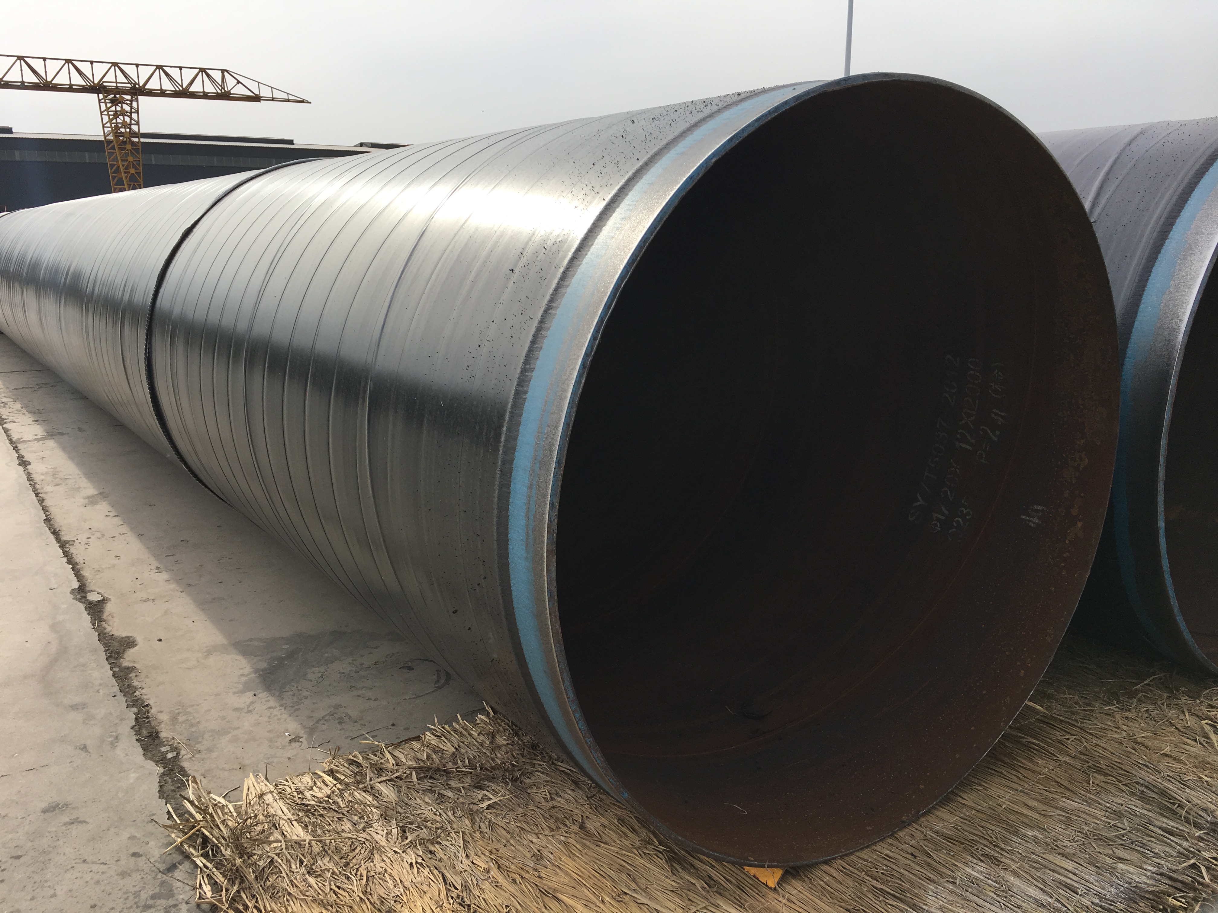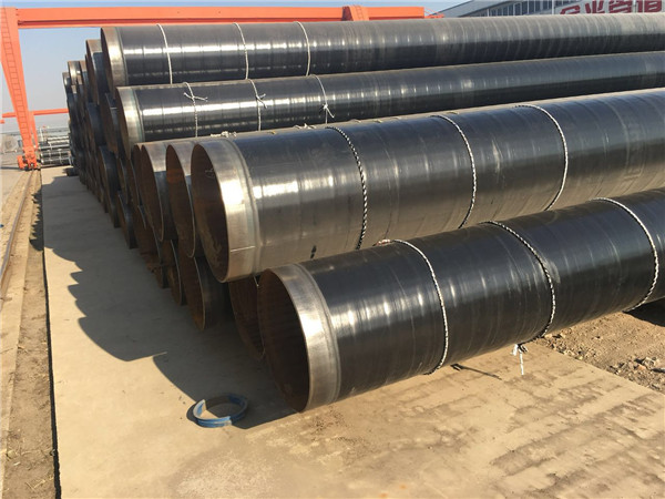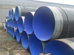 3pe防腐螺旋鋼管防腐結構:第一層環氧粉末(FBE>100um ),第二層膠粘劑(AD)170~250um,第三層聚乙烯(PE)2.5~3.7mm。三種材料融為一體,并與鋼管牢固結合形成優良的防腐層。