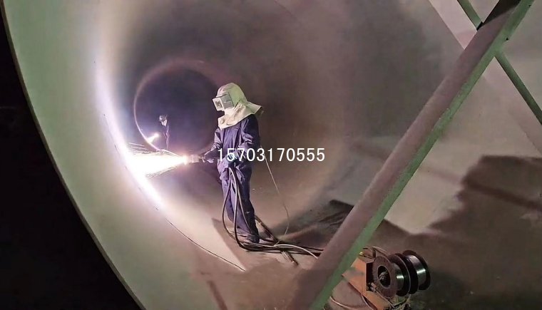在施工過程中,采用以下設備和措施:空氣壓縮機、儲氣罐、油水分離器、空氣濾清器、噴砂罐、膠帶、噴砂槍、耐磨瓷嘴。 磨料選用硬度高,有棱角的0.5-2mm河砂,砂粒干燥,含水量小于1%,清潔無雜質,噴嘴選用擴張L型瓷嘴。空氣經擴張-壓縮-擴張等階段,流出砂嘴的空氣流量能達到超音速狀態,使噴射的磨料動能大大增加,使基體表面更加活化和電化,而導致鍍層結合強度的增加。除銹工藝流程為壓縮空氣進入儲氣罐,經油水分離器、空氣濾清器,使其清潔干燥,不含油質,然后進入砂罐,經膠帶將砂粒壓至噴砂槍,噴射金屬基體。按上述設備條件進行施工,表面處理即可達到Sa3標準,其表面粗糙度40um-60um在此時金屬表面的電極電位與活化程度和涂層的粘結力均達到最佳參數。