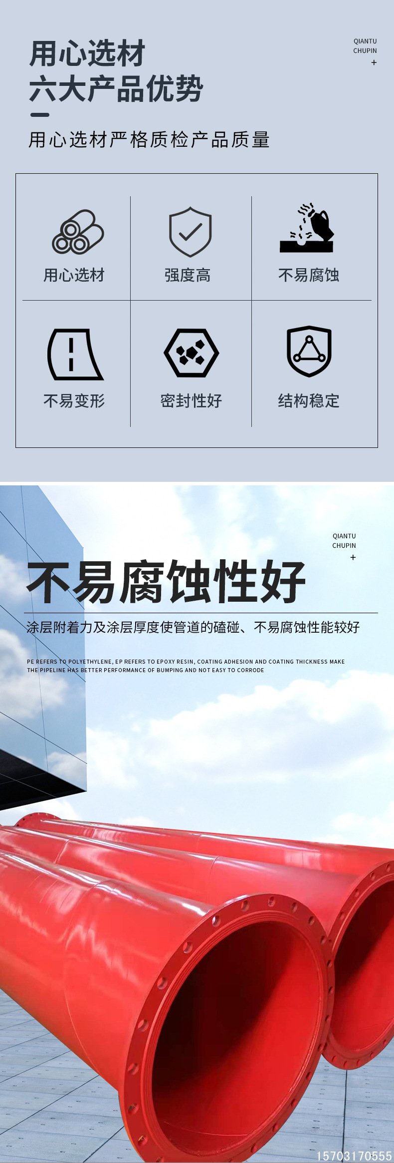 3. **良好的耐水性**:涂塑層具有出色的防水性能,可以防止水分通過鋼管壁滲透進入管道內部,保證消防水系統的穩定性和可靠性。