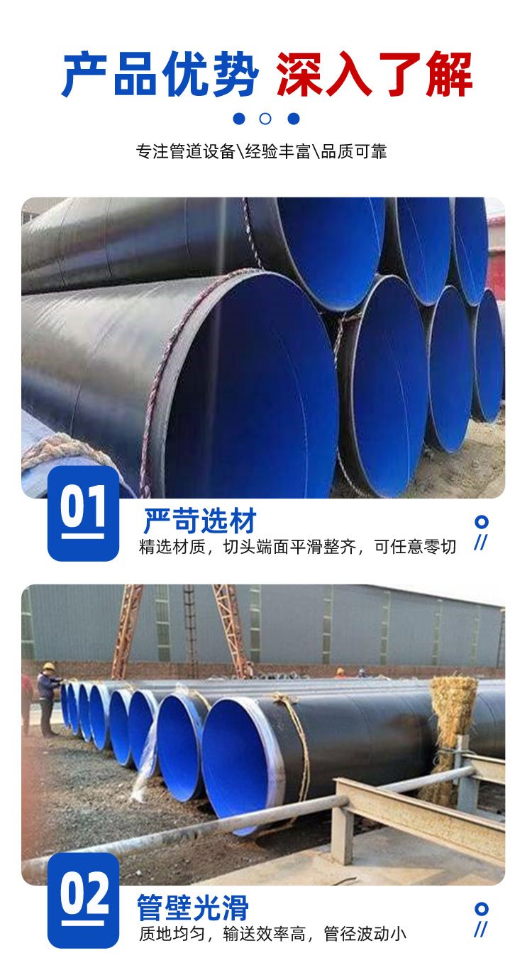 與傳統材料相比,TPEP 防腐螺旋鋼管在耐腐蝕性方面表現突出,可抵御酸性、堿性、鹽性及氧化性等各種腐蝕性介質侵蝕,避免環境污染和管道事故發生。其壽命更長,采用先進防腐技術,壽命可達 30 年以上。良好的機械性能源于較高的強度和韌性,加上精心設計的防腐層,能承受較大壓力和外部沖擊力,確保運行穩定安全。施工方便性體現在采用螺旋鋼管成型工藝,長度可根據實際需要定制,減少現場焊接工作量,且防腐層質量易于控制,運輸和安裝過程中不易受損。