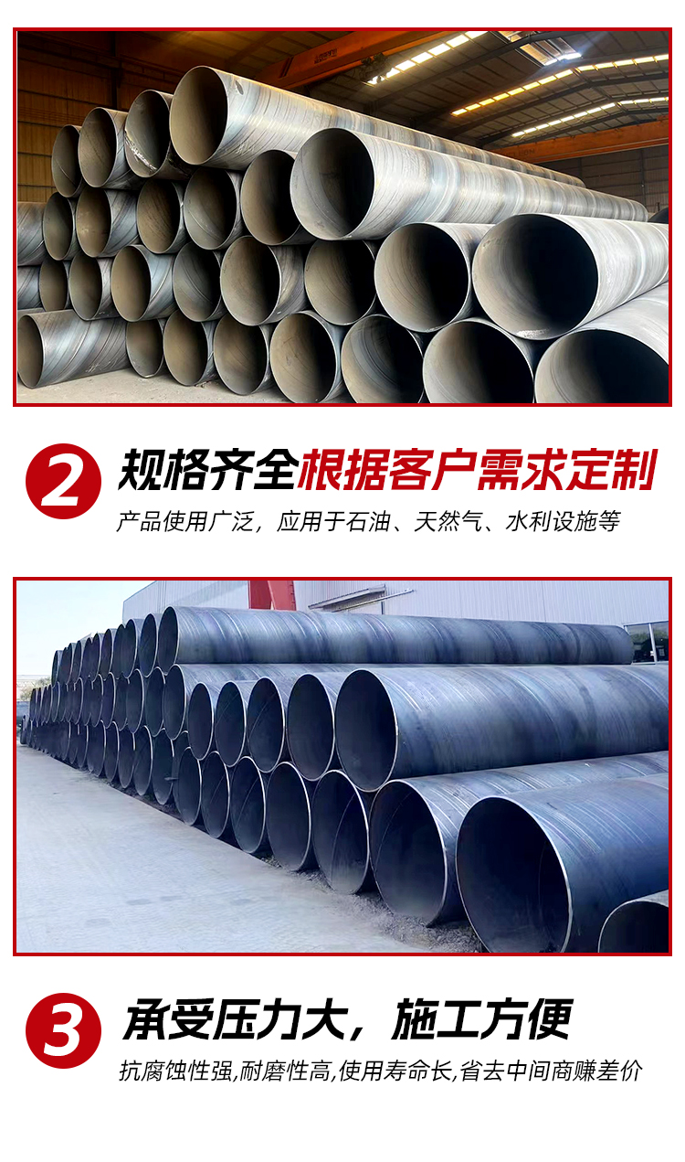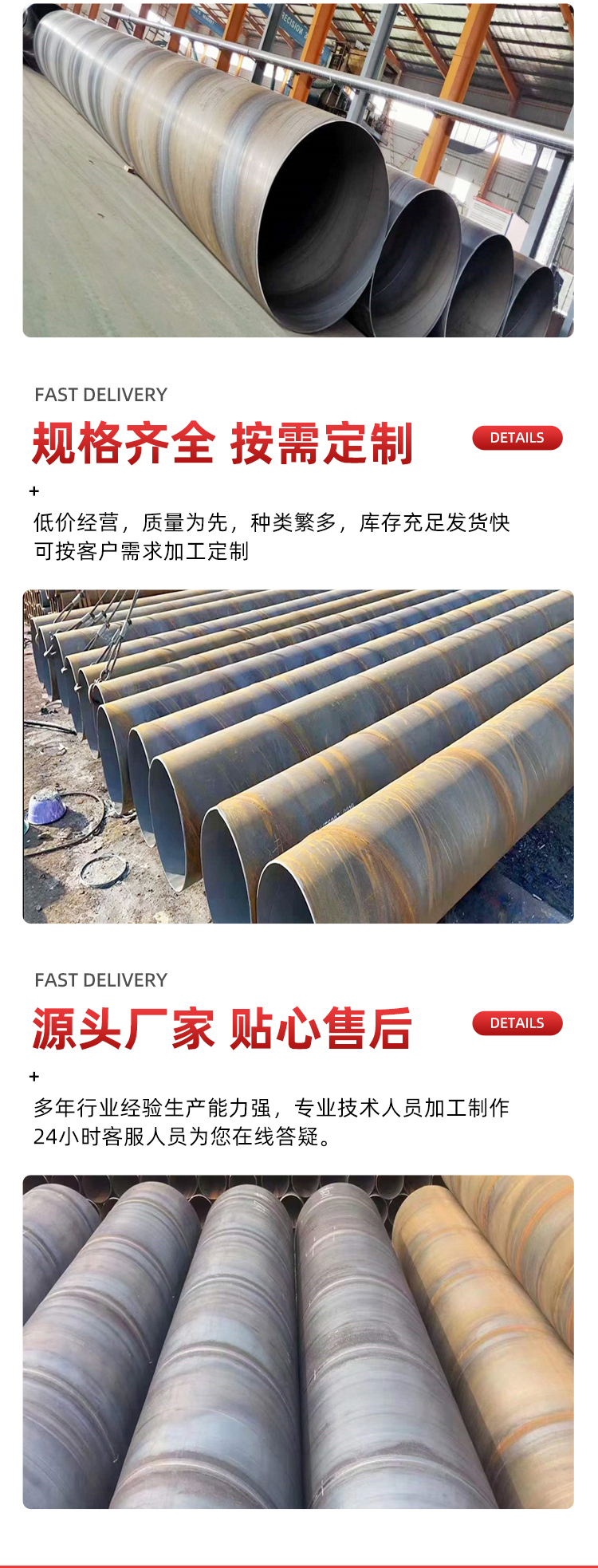 2. 標準:螺旋鋼管的標準包括國家標準(GB)和行業標準(SY),如GB/T 9711-2011《石油天然氣工業 輸送用鋼管》、GB/T 3091-2015《低壓流體輸送用焊接鋼管》等。