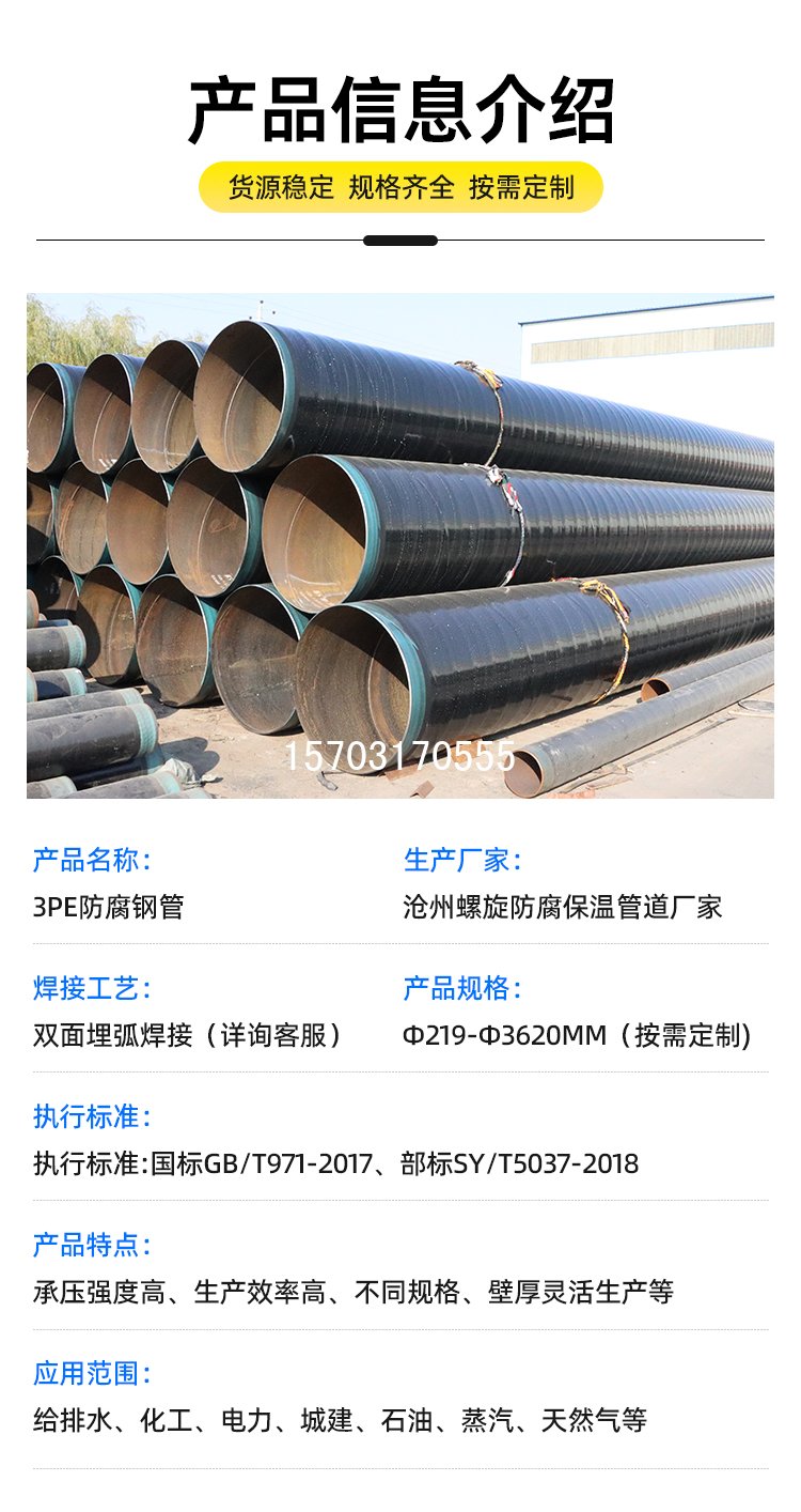 大口徑防腐螺旋鋼管是一種經(jīng)過防腐工藝加工處理的鋼制管道,其主要目的是有效防止或減緩在運輸與使用過程中發(fā)生化學(xué)或電化學(xué)反應(yīng)而導(dǎo)致的腐蝕現(xiàn)象。
